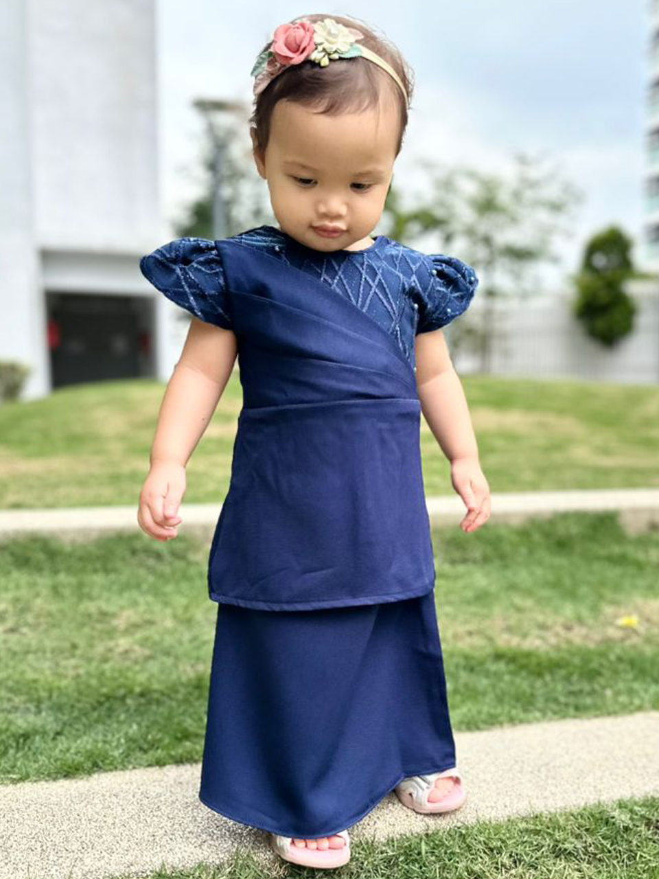 Pleated Kurung (Navy Blue) – Version 1